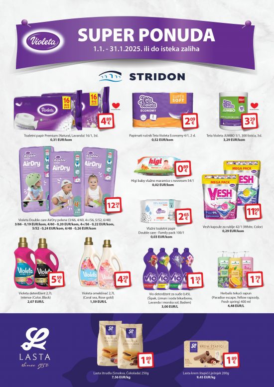 Plakat 14 dana vrijedi od 17. do 30. siječnja 2025. Letak Violeta vrijedi od 1. do 31. siječnja 2025.