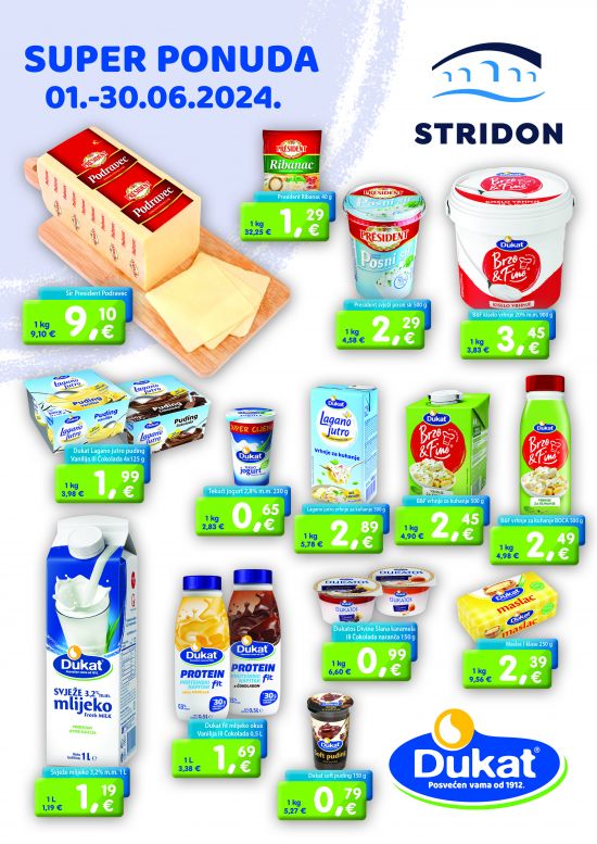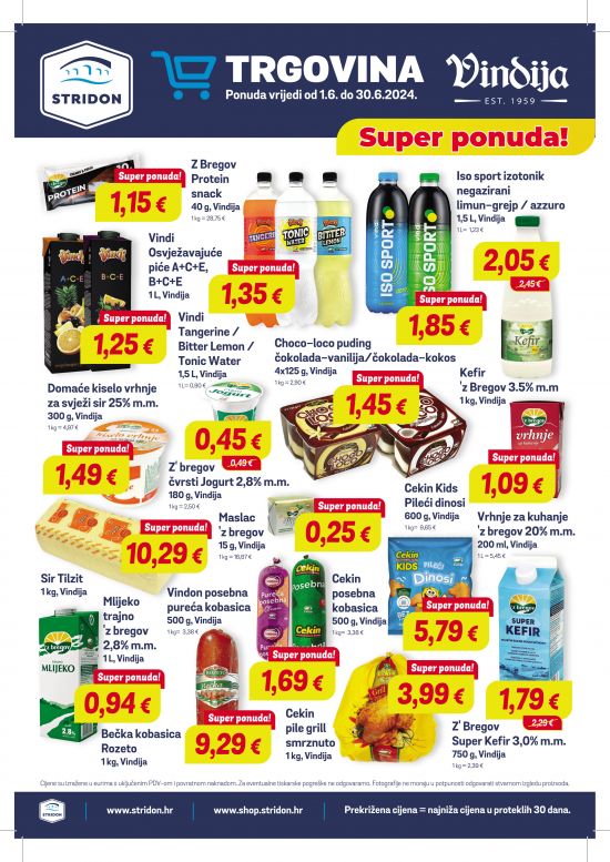 Plakat 14 dana vrijedi od 24. svibnja do 6. lipnja 2024. Letak Vindija vrijedi od 1. do 30. lipnja 2024. Letak Dukat vrijedi od 1. do 30. lipnja 2024.